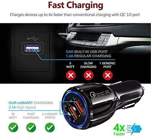 Advanced Safety This car charger fast charging has durable plastic casing and ul , CE, FCC and RoHS certifications and with Built-in protection system against over-current, over-charging and over-heating ensures performance, safety and reliability