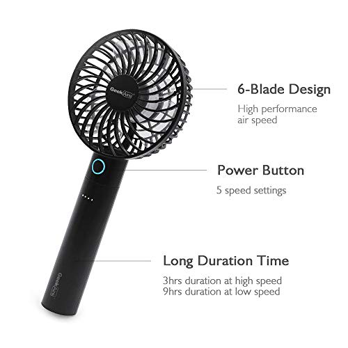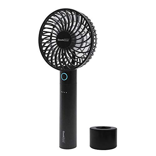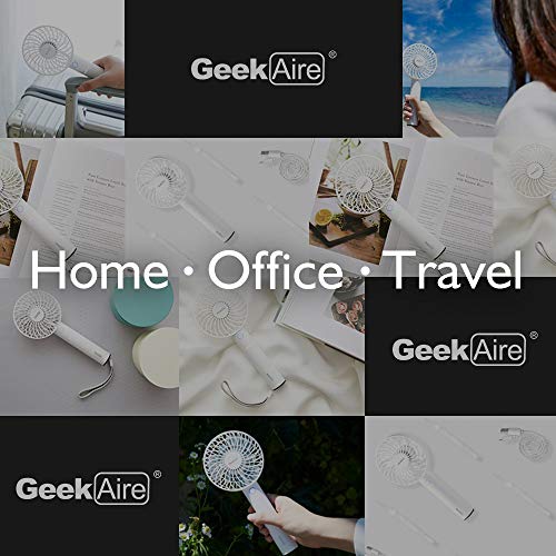 Geek Aire GF2 series is new generation mini handheld portable fan. It is rechargeable with a 2600 mAh lithium-ion battery, which can also be detached as a separated power bank for convenience. The light-weight sleek handheld design allows you to carry around in office, home and travel. It is built with brushless DC motor for outstanding air performance and durable quality. It also comes with a charging dock to stand the fan where you would like to use.