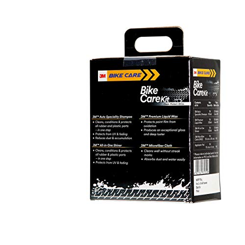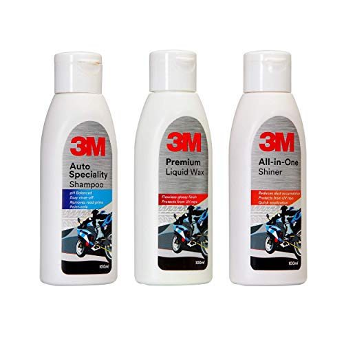 Contains 3M premium liquid wax (100ml), 3M shampoo (100ml), 3M all-in-one shiner (100ml), application pad and free 3M microfiber cloth