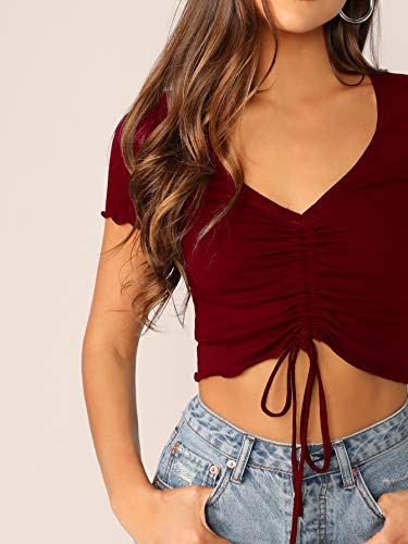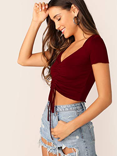 Aahwan Store Women V Neck Drawstring Ruched Crop Top