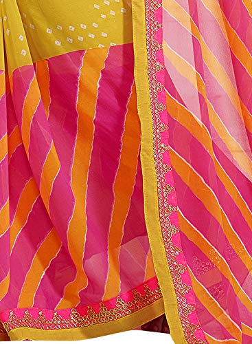 Aarrah Retails look simple and sober stylish with Multicolor embroidered and bandhej print pure georgette saree. This beautiful casual saree is elegantly decorated with gorgeous prints and pattern that gives a perfect look to the outfit. This saree is an ideal for casual functions and social gathering. Saree comes along with matching fabric unstitched blouse piece. Saree Length : 5.5 MTR Fabric: Pure Georgette Blouse Length : 0.80 MTR Note : All products of Aarrah Retails comes under the copyright with Trademark under Gujarat Commercial Tax.