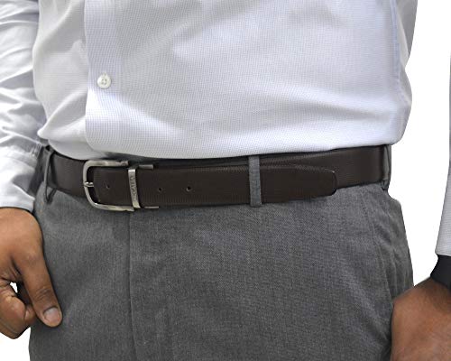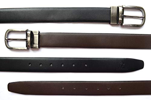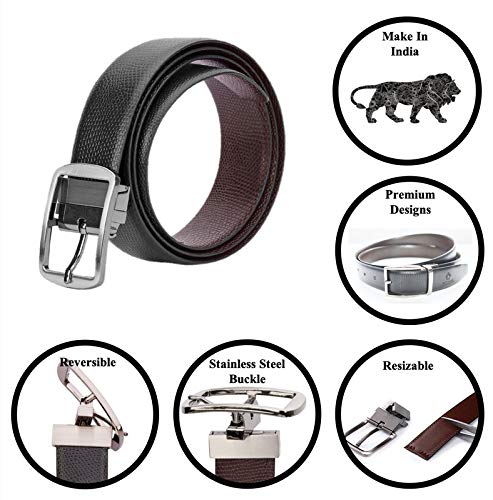 Accalia Formal Mens Belt Black and Brown Reversible Belts For Men, Quality leather, Checks Design Strap with Curve Style Buckle – Upto 46 Inches