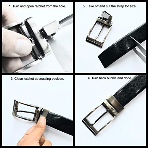 Fashion belts: 2 belts in 1, One side burnt umber and the other black belt, or one side black and the other side brown, reverse the buckle to switch the two sides to your preference. Fashionable and stylish looking.