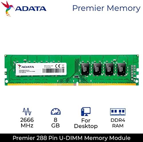 ADATA Premier 8GB DDR4 2666 unbuffered-DIMM memory is the latest upgrade solution that supports Intel’s newest platforms for faster data transfer and enhanced power efficiency. Utilizing a 288-pin design, operating voltage has been reduced from 1.5V on DDR3 to 1.2V, which not only helps save power by 20%, but also boosts transfer bandwidth speed to 21.3GB/s. Every chip in ADATA memory modules meets strict JEDEC and RoHS standards, ensuring compatibility, stability.