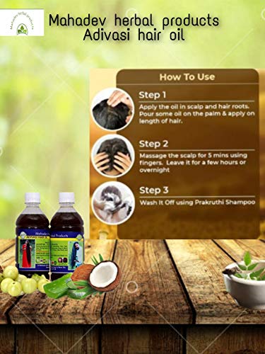 PRODUCT DESCRIPTION ⦿ ⦿ Adivasi mahadev Herbal Hair Oil is basically made by pure Adivasi ayurvedic herbs which effectively prevent the hairs fall and help to grow long hairs with no side effect. ⦿ This Hair Oil is used for Hair Problems like Hair Loss Dandruff Hair Growth Gray Hair New Hair Alopecia Dry Hair Spit Ends Dull Hair Frizzy Hair Use this Oil 2 to 3 times in a week. ⦿ Used to make your Hair and to control Dandruff Apply the oil 2 to 3 times in a week Before Bath to stop the Dandruff And Healthy long Hair. ⦿ IT’S CONTAINS 108 type of Herbs, Dashwala, Loliswala, Soapnut, Bahrami, Kasthuri oil, Amla, Aloe Vera, Kadupatti, Mentha, Lavanchy, Olive, Rosemary, Pure Grape Seed, Castor, Jojoba, Coconut, Sesame, Lavender, Red Onion & Small Onion, Curry Leaves & Roots, Hibiscus, Tea tree, Clary Sage, Thyme, Lemongrass, Cedarwood, Roman Chamomile, Geranium, etc… ⦿ DIRECTION TO USE: Apply Thoroughly & Deeply hair roots and Leave Over Night for Goo
