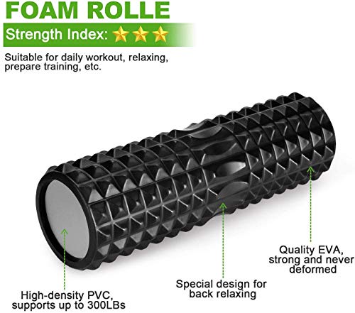 18″ Large Foam Roller: The foam roller features ergonomic soft surface that perfectly massages your back, leg, neck, shoulders. It is designed to help increase circulation, ease soreness and stiffness and assist rehabilitation.