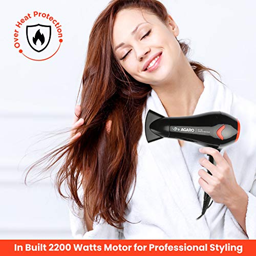 AGARO HD-1150 2200-Watt Professional Hair Dryer with Concentrator, Diffuser & Cool Shot Button (Black)