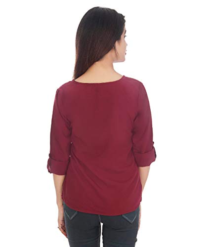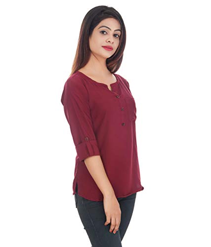 होम » Airan Women Tops/Tunics @Plain Solid Pattern @Crepe Fabric @Rolled-Up Sleeves