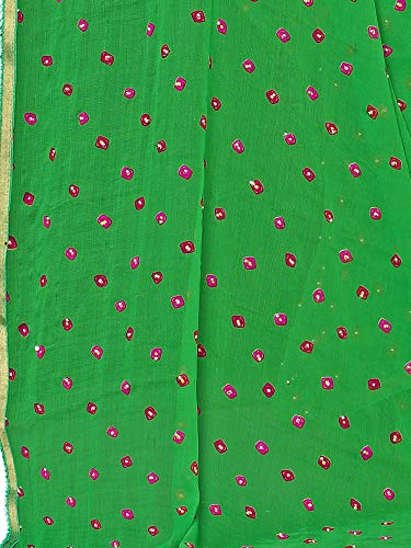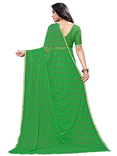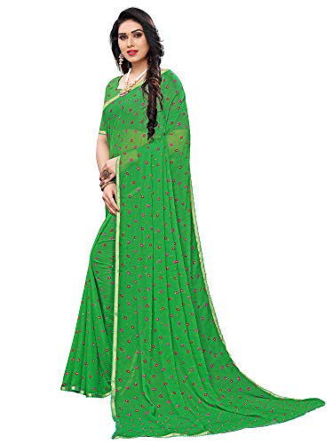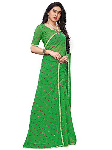 AKHILAM Women’s Lace Border Bandhani Printed Chiffon Saree with Unstitched Blouse