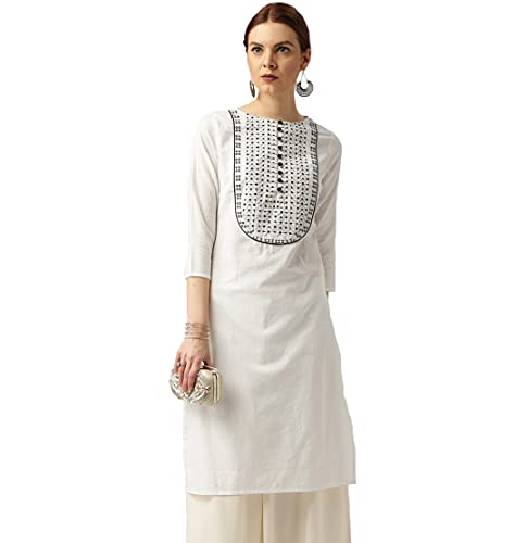 Amayra 3/4 Sleeve cotton Embroidery straight kurti is ideal day to day wear for women. Women can pair it with fitted denim or leggings and make it an ideal day wear.