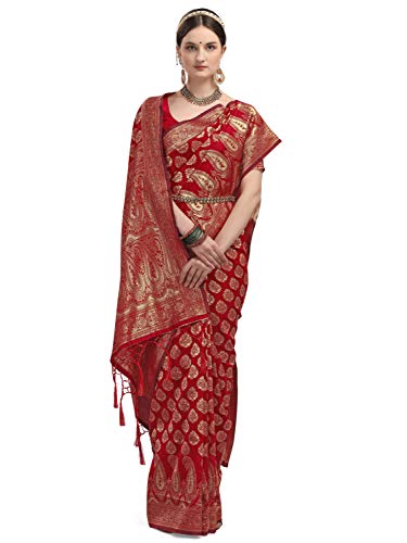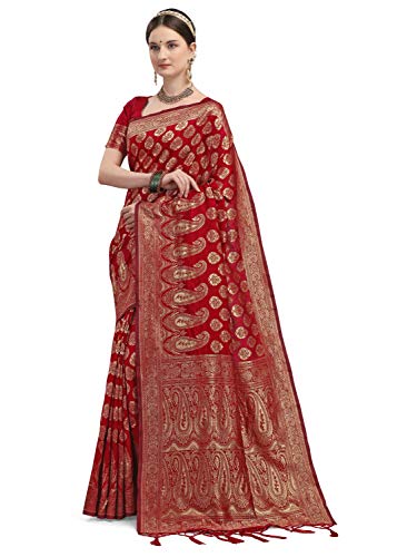 Amazon Brand – Anarva Women’s Banarasi Silk Blend Saree With Unstitched Blouse Piece