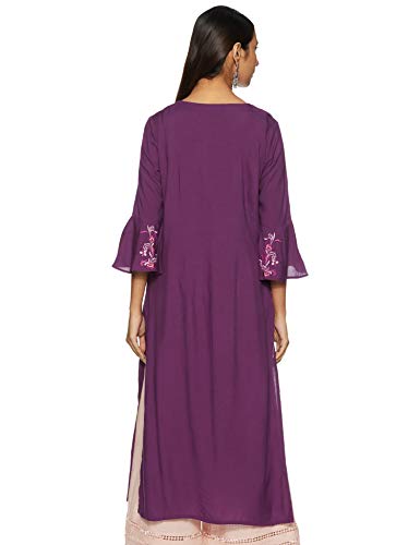 Straight, Knee Length Kurta with Embroidered Bell Sleeves