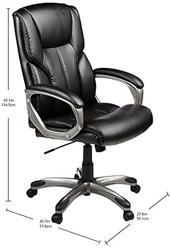 Ergonomic executive chair upholstered in bonded black leather and PVC padded seat and back for all-day comfort and support pneumatic seat-height adjustment; 360-degree swivel; smooth-rolling casters measures 29.13 by 25.59 by 41.34 to 45.08 inches (L x W x H); assembly instructions included. Maximum weight capacity – 250 pounds.Available in Bangalore only