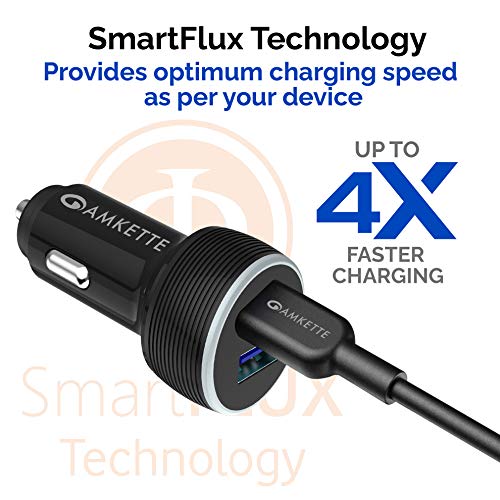 Amkette Power Pro 2 Port USB Smart Car Charger with Quick Charge 3.0 (Black)