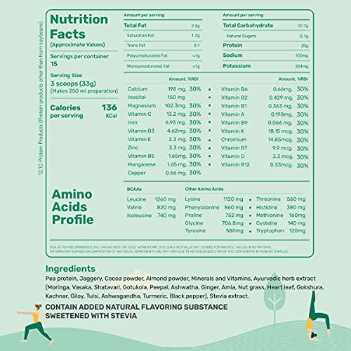 Power of plant protein, along with 16 Ayurvedic Herbs, 21 Vitamins & Minerals, and 11 amino acids