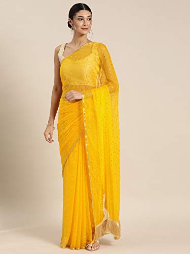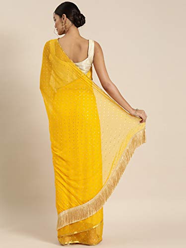 Anni Designer സ്ത്രീകളുടെ കറുപ്പും സ്വർണ്ണനിറവുമുള്ള അലങ്കരിച്ച ഷിഫോൺ സാരി (കറുപ്പ്)