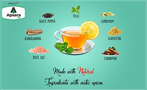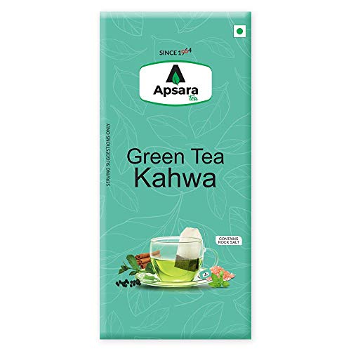 Our green teas are made with all-natural ingredients and are all whole leaves that come in unstapled tea bags. Natural ingredients gets you a promising flavor once you add hot water recommended 85 degree This, in turn, allows all the flavors to be completely released into your cup. This Kahwa Green tea has a very unique flavor with slightly Tangy hints over stronger salty, spice flavors. It has a mix of herbs and spices that rejuvinates the body with its incredible healing properties. Now, enjoy Apsara Green Tea Kahwa with your family.