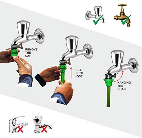 Hose Reel Connector with Tap Adapter, Butterfly Clamp & Bead Chain to Tighten