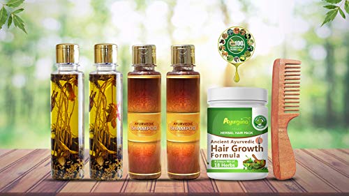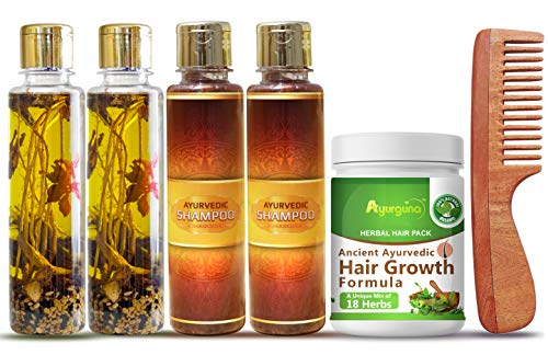 Ayurguna Ayurvedic Hair Therapy Kit – 100% Natural & Handmade – 2 Hair oil, 2 Shampoo, 1 Hair Growth Pack, 1 Neem Wood Comb | Reduce Hair Fall – Boosts Hair Growth – Promotes New Hair
