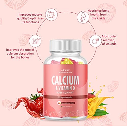 Azani Active Nutrition Calcium & Vitamin D Bone Support Gummies for Adults & Kids |Healthy diet supplement for strong bones (Mango & Strawberry Flavour) – 30 vegan gummies