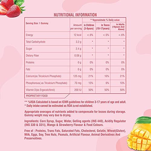 Improves muscle quality and optimizes its function: Our nutrition calcium & vitamin D gummies retain the muscle mass in a growing body and optimize its function and flexibility.
