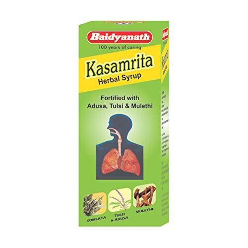 Baidyanath Kasamrit Herbal Cough Syrup is a non-drowsy tonic which acts as a herbal supplement for common cough and cold, sneezing, running nose, nasal congestion, sore throat. Effective in dry, wt and allergic cough. Ensures relief in respiratory tract infections, liquifies & expels viscid secretion in distressing and irritating dry cough. Suitable for both childrens and adults.