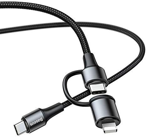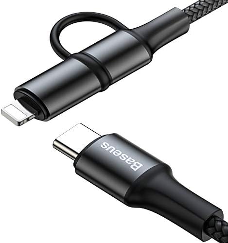 The Baseus 2-in-1 USB cable has two interfaces that support quick charge as well as transmit data through IP interface and Type-C interface. The 1m cable offers 60W power delivery safe and quick charge with 3 intelligent chips, supporting phones computers, iPad, iPhones, etc. Tough and durable braided nylon cable is of high quality, resistant to wear and breakage. The two-port fast transmission plug is stepped-wedge designed allowing you to charge without removing the phone case. With a built-in storage hook and loop fastener, keep it knot-free. 2-in-1 USB Type-C + IP Cable Thick Braided High-Density Wire with Fastener 3 Intelligent Chip System Management QC 3.0 and 60W PD Aluminum Alloy Plugs and iPhone Connector