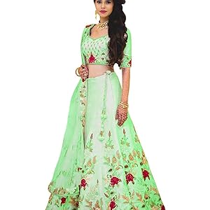 This classy lehenga, which is designed with an ethnic appeal features a pleated and embroidered skirt. The lehenga hangs from the waist leaving the lower back and midriff bare. The outfit features beautiful embroidered floral design that is both classy and appealing. The accompanying dupatta embellishes the beauty of your wardrobe.