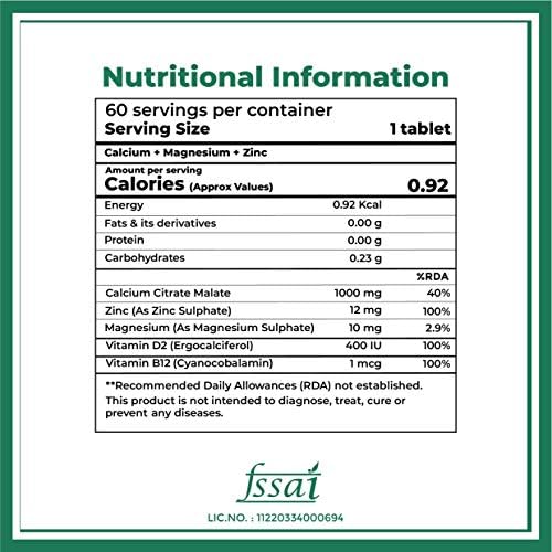 MULTI BENEFITS OF CALMAGZINC SUPPLEMENT : Calcium, Magnesium, Zinc, Vitamin D & B12 together forms a Perfect combination which are essential for bone and joint health