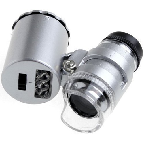 Boosty Smallest 60X Microscope 2 LED Light Eye Lens Mini Magnifier Loupe with UV Light
