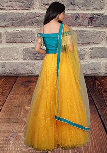 Lehenga color:- Mustard; Choli Color:- Sky Blue; Dupatta Color:- Mustard;