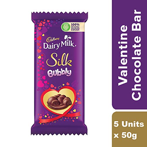 This comprises of 5 packs of Cadbury dairy milk silk bubbly valentine chocolate bar 50g