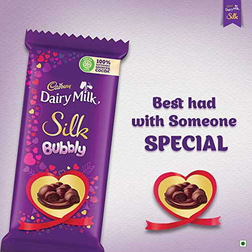 Celebrate this valentine’s day with Cadbury dairy milk silk bubbly valentine pack. Cadbury dairy milk silk bubbly has the same smooth flavour that you would expect from Cadbury’s silk with the added twist of bubbles (completely non-flavour altering). the bubbles simply make it a little bigger to bite into, a little airier when you are chewing. .