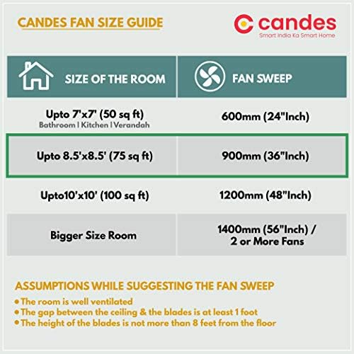 Blade Size: 900 mm; Fan Speed: 440 RPM High Speed; Air Delivery: 230 CMM, Number of Speed Setting: 4/5, Dynamically Balanced Blades. Superior components for longer life!