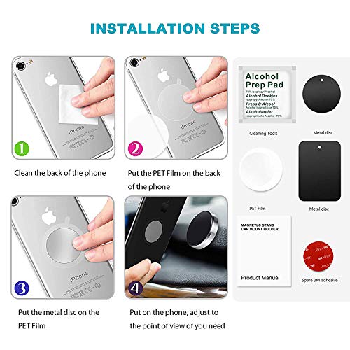 METAL PLATE: Equipped with round metallic plate. The metallic plate for magnet can simply be placed between the device and its case, or the adhesive metal plate can also stick to back of your device directly without case.