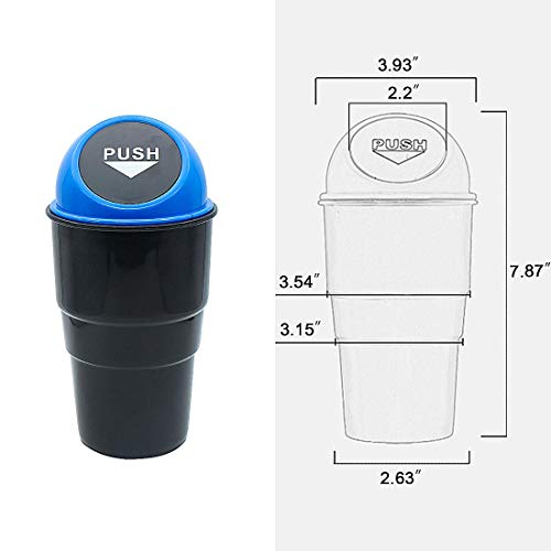 Vehicle Car Auto Garbage Trash Can Dimension: Measures 2.5″ diameter at the base; 3.7″ diameter at the top; and 8″ Height.