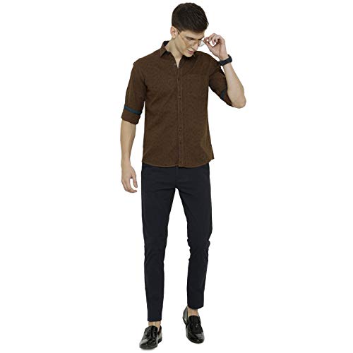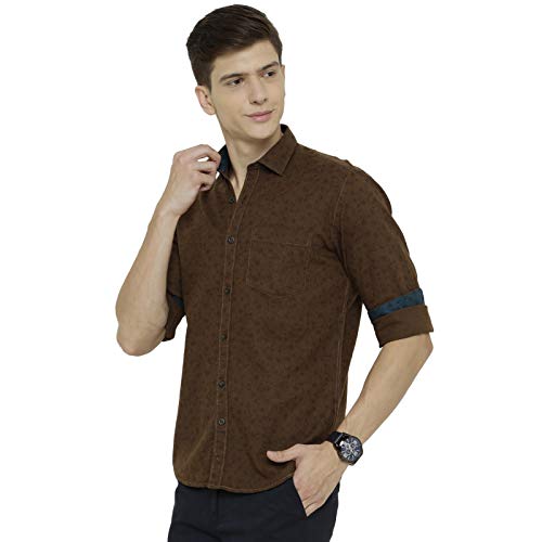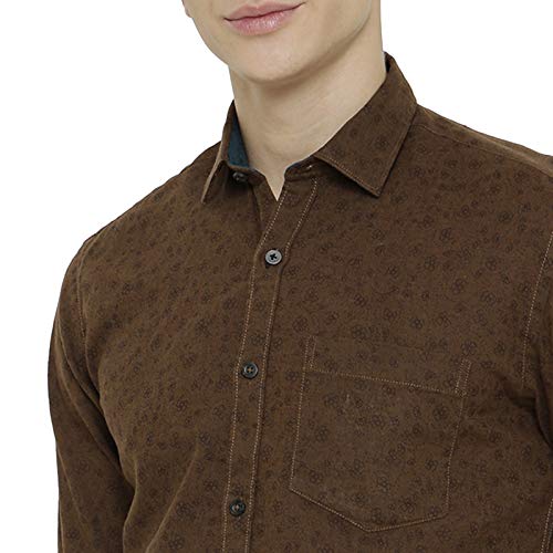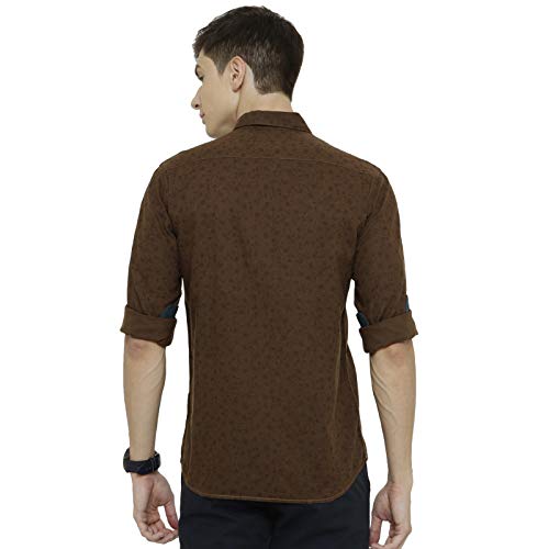 होम » CAVALLO by Linen Club Brown Printed Casual Regular Fit Linen Shirts for Men
