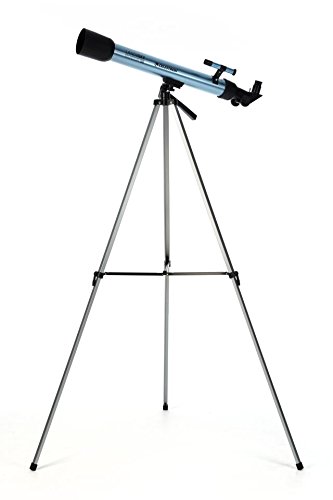 Optical Tube Assembly: Optical design: Refractor, optical coatings: Coated, objective lens cell: Plastic, lens shade: Plastic, focuser: 0.96” rack and pinion, plastic. Focuser drawtube: Plastic, color black. Focuser pinion gear: Plastic, tube: Plastic, finder mounting: Aluminum acorn nuts, tube color: Light blue metallic, Dust cover: plastic, color black. Mount: AZ, tripod: Full size steel, accessory tray: None.