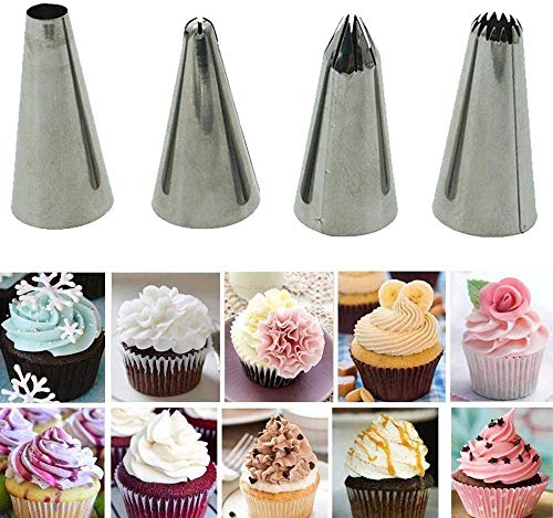 Cake decorating tips: Closed Star, Open Star, Round, Plain, Leaf, Petal, etc. Cake decorating tips do not bend easily when pressure is applied. You can create so many types of patterns on cakes and it will be fun