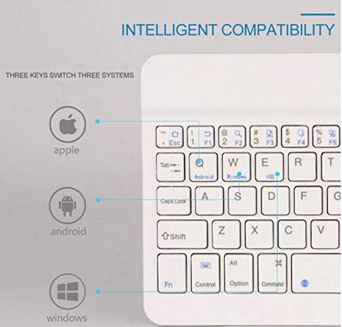 [BLUETOOTH 3.0 KEYBOARD AND EASY OPERATION]: the Working distance of our keyboard Working distance up to 33 ft. The keyboard is designed with a separate off/on slider and bluetooth connect button and corresponding indicators. press the “fn” “Android” or “win” or “iOS” on the keyboard simultaneously will quickly switch between the three modes.