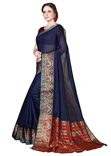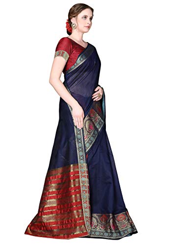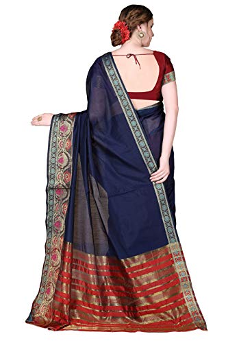 Material : cotton blend color : dark blue type: kanjivaram silk golden zari work