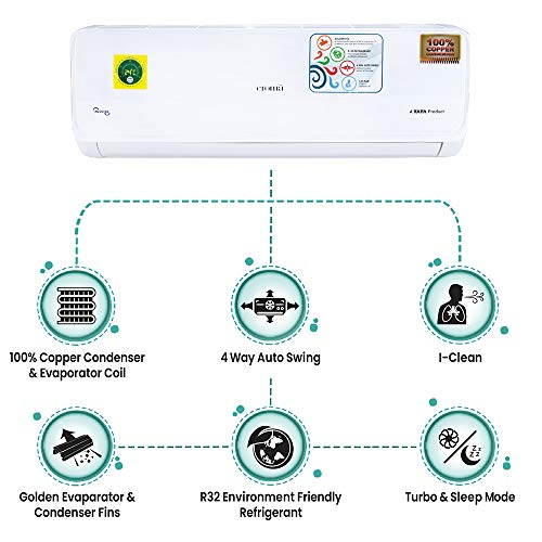 100% Copper Condenser & Evaporator Coil with Golden Evaporator Fins; ensures an enhanced performance and longevity; R32 – Eco Friendly Refrigerant Gas, No Ozone depletion potential and low global warming