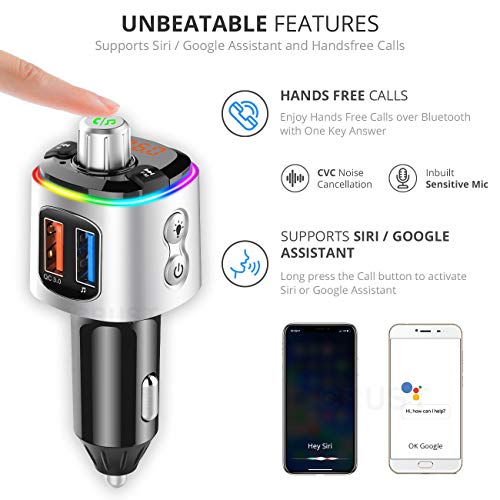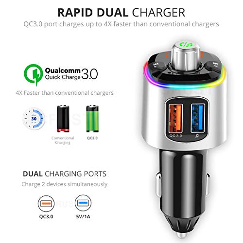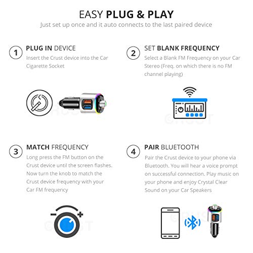 CRUST Car Bluetooth Device for Music System, FM Transmitter Wireless In-Car Radio Adapter Handsfree Car Kit