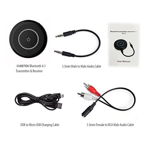 CUBETEK 2 in 1 Bluetooth Transmitter & Receiver with Bluetooth V5.0 is a portable handy device, allows you to wirelessly stream your favourite movies, music, games, or other media from non-Bluetooth sources straight to Bluetooth headphones, or speakers. It also allows traditional audio devices like home and car stereos to receive music from your mobile or tablets..