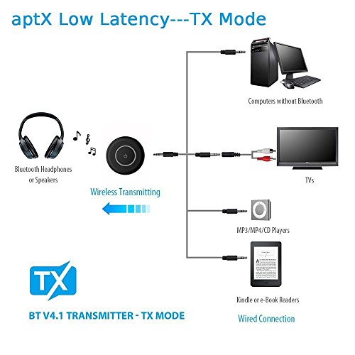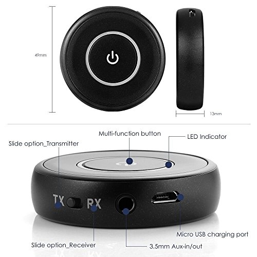 ★ WIRELESS EVERYWHERE – As Bluetooth Audio Transmitter (TX Mode), turn a non-Bluetooth TV, PC, CD player, iPod, Laptop, Tablet, MP3 / MP4,included,but not limited ( with 3.5mm or 2.5mm jack input port)into a Bluetooth transmitter while pairing with Bluetooth stereo Headphones or Speakers; As Bluetooth Audio Receiver (RX Mode),Ideal for home or vehicle music streaming sound system. Then you are free to enjoy HIFI CD-like audio quality.