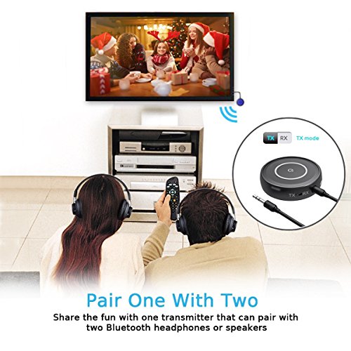 2. This transmitter allows pairing up to 2 devices( bluetooth headset/speaker), which means you can watch TV or listen to music with others .