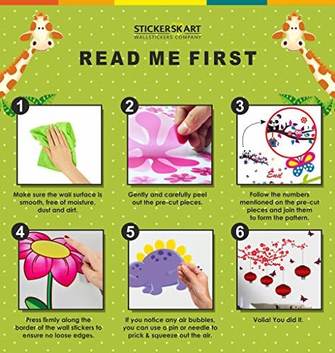 Ideal for family lounge, bedroom, cafe and restaurant, kids room, nursery room etc. PVC, non-toxic and waterproof. These wall stickers decorate your home just in minutes. Easy installation the surface you wish to attach your decal must be clean and free from dust, grease or any other contamination. Simply peel those pre-cut pieces of wall stickers off from the backing paper and apply them to the desired area. Refer to the finished design shown in between the sheet and follow the numbers mentioned on the pieces to form the desired pattern. Freshly painted or lacquered surfaces must be allowed to completely cure for minimum 30 days before the decal is applied. After pasting the wall stickers on your wall, press firmly along the border and remove air bubbles if any. Repeat, if required. Do not apply on wet walls. It will be helpful and fun if you take help of your friends or family members.
