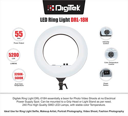 Switch to the right light: Digitek bi-color led ring light comes with 240 pieces LED bulbs; Special LED SMD design; Come with hot shoe adapter for helping the camera or the phone holder be installed onto the ring light firmly.