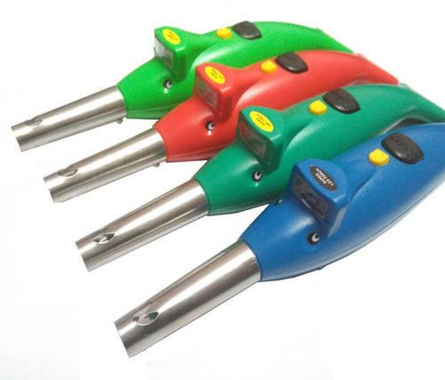 This gas lighter is a daily use element. Electronic gas lighter with LED torch. Non-stop spark soft touch switch for generating sparkled torch for convenience abs body uses 1 AA cell (1.5v) (not included) stainless steel front cap easy and convenient to use a must for every kitchen.
