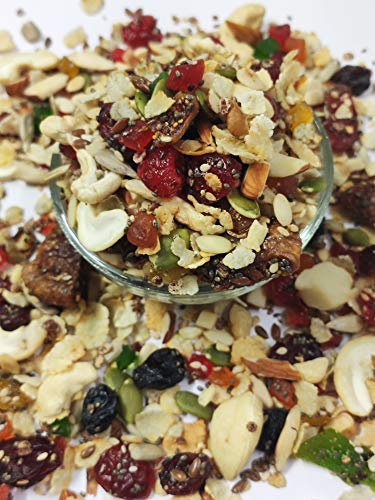 High protein, high dietary fiber, no gluten, no GMO, zero trans fat, zero cholesterol. Healthy nuts and dried fruits, Good for an active lifestyle. Low in fat, calories and sodium, ideal for weight watchers. High in proteins and anti oxidants, slows the ageing process and keeps diseases away. Rich source of minerals, folic acid, calcium and Iron. Improves digestion, immunity, mental health, stop urinary tract infections. Healthy Nutmix with ultra healthy combination of dry fruits, which give you your daily intake of nutrients. Time to be happy, lovely and healthy.